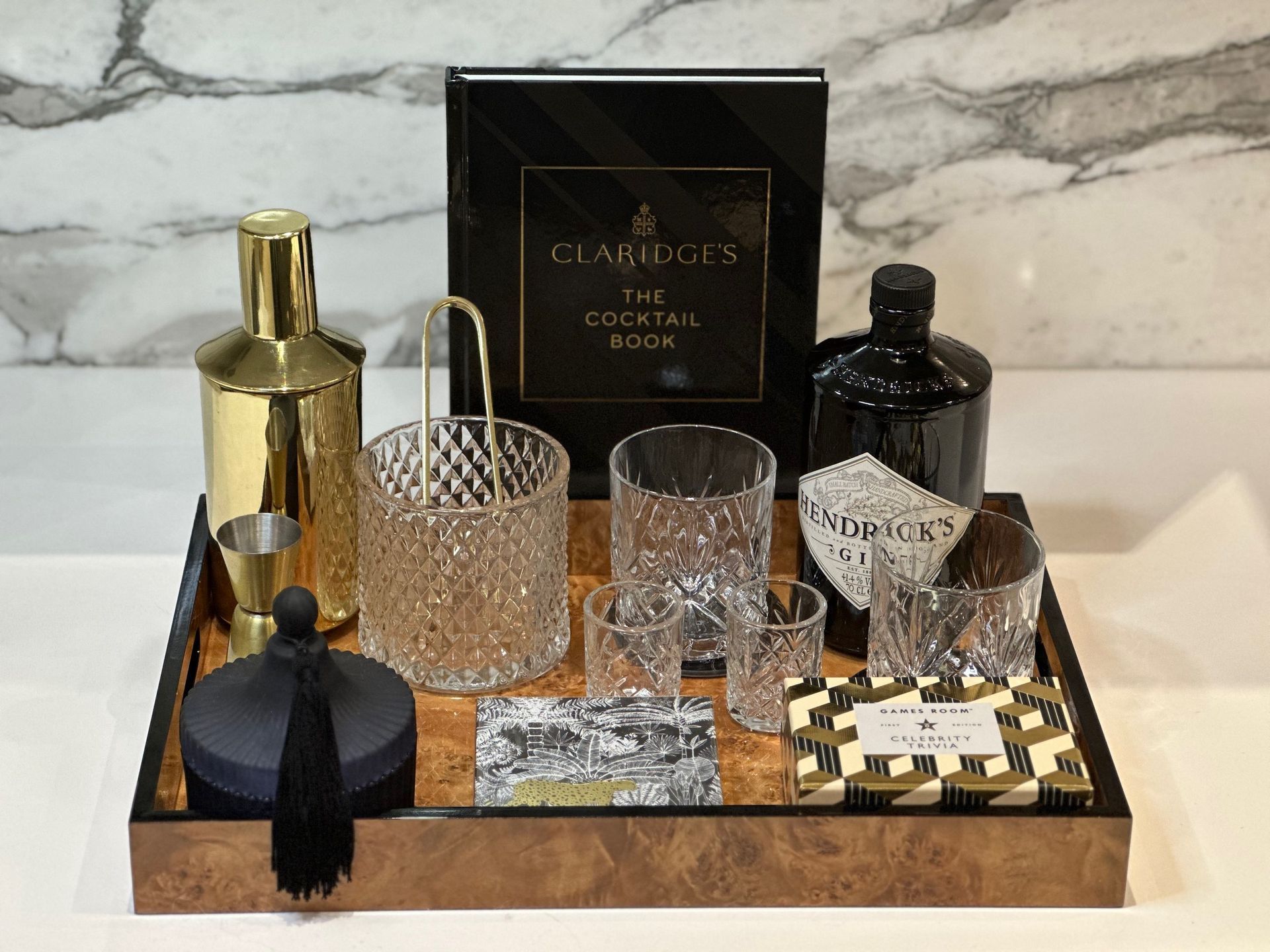 For those companies looking for something a little different our bar ready cocktail trays are not only a sophisticated addition to any study or coffee table but contain all the necessary tools for an evening of mixology with friends, or a quiet evening in with cocktails or cards. Tray combinations are bespoke to our clients based on their personal preferences.